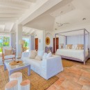 Then there are the gorgeous four bedrooms that are located in the main house and the fifth bedroom is located in a sweet cottage separate from the rest of the property, accessible by crossing over an idyllic bridge and koi pond. Each bedroom has their very own private en-suite and are fully air conditioned. The four bedrooms in the main house offer a king sized bed, dressing and tub terrace while the cottage bedroom has a lovely queen sized bed, lovely inside and outside shower, private patio and extensive terrace.