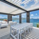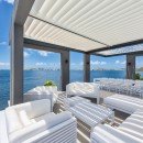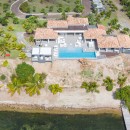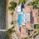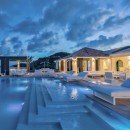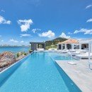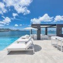 This is a five-bedroom and five-bath masterpiece of contemporary architecture and design. Extending along the front of the property, and what is sure to be a favorite spot for all, is the pool terrace. Blending unique modern art and décor, it also incorporates natural stone and features an infinity edge pool that draws your eye to the perfectly blue sea waters beyond. The terrace provides the ultimate in outdoor living spaces and includes a full-sized sun bed with canopy for afternoon shade, a large dining gazebo and al fresco kitchen and lounge, and several open-air lounges with oversized sofas and chairs, as well as a massive banquette.