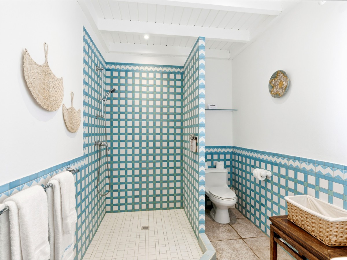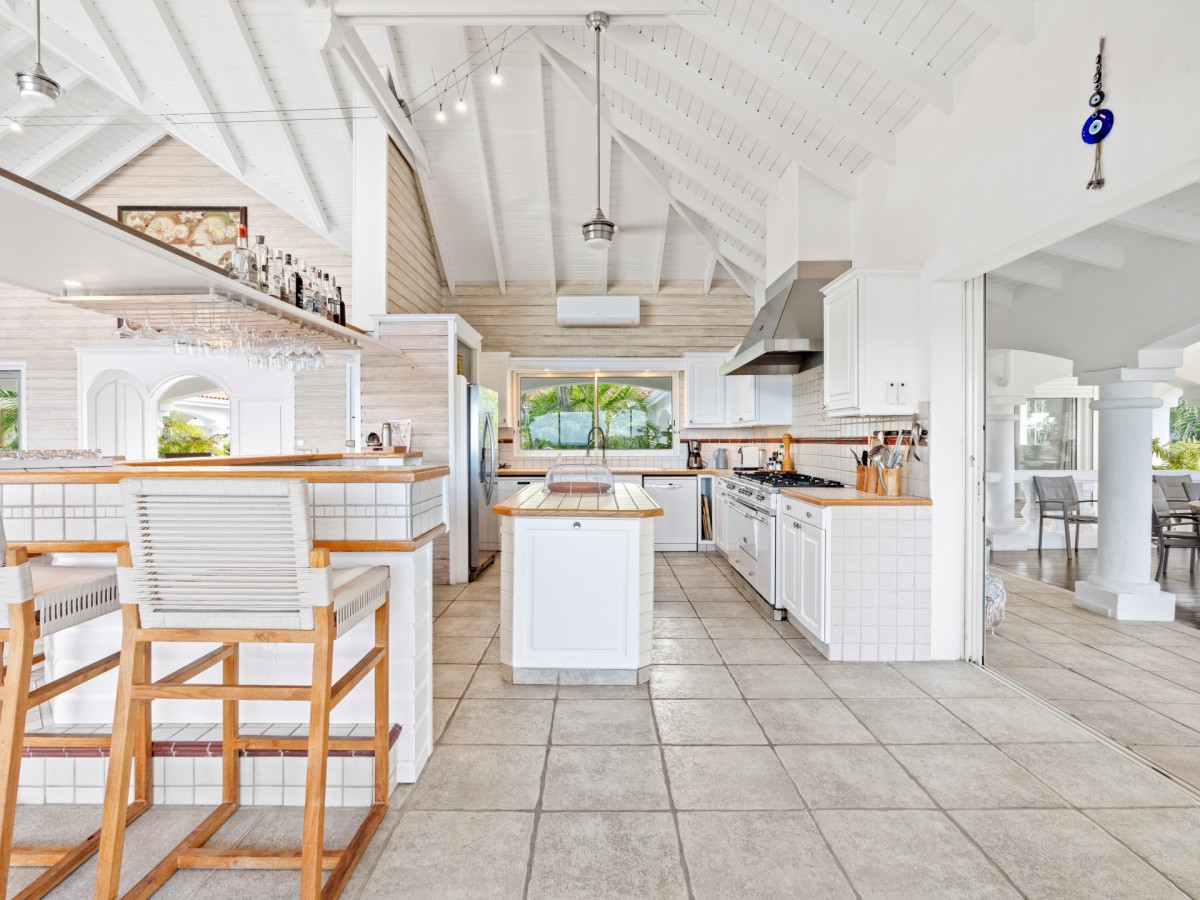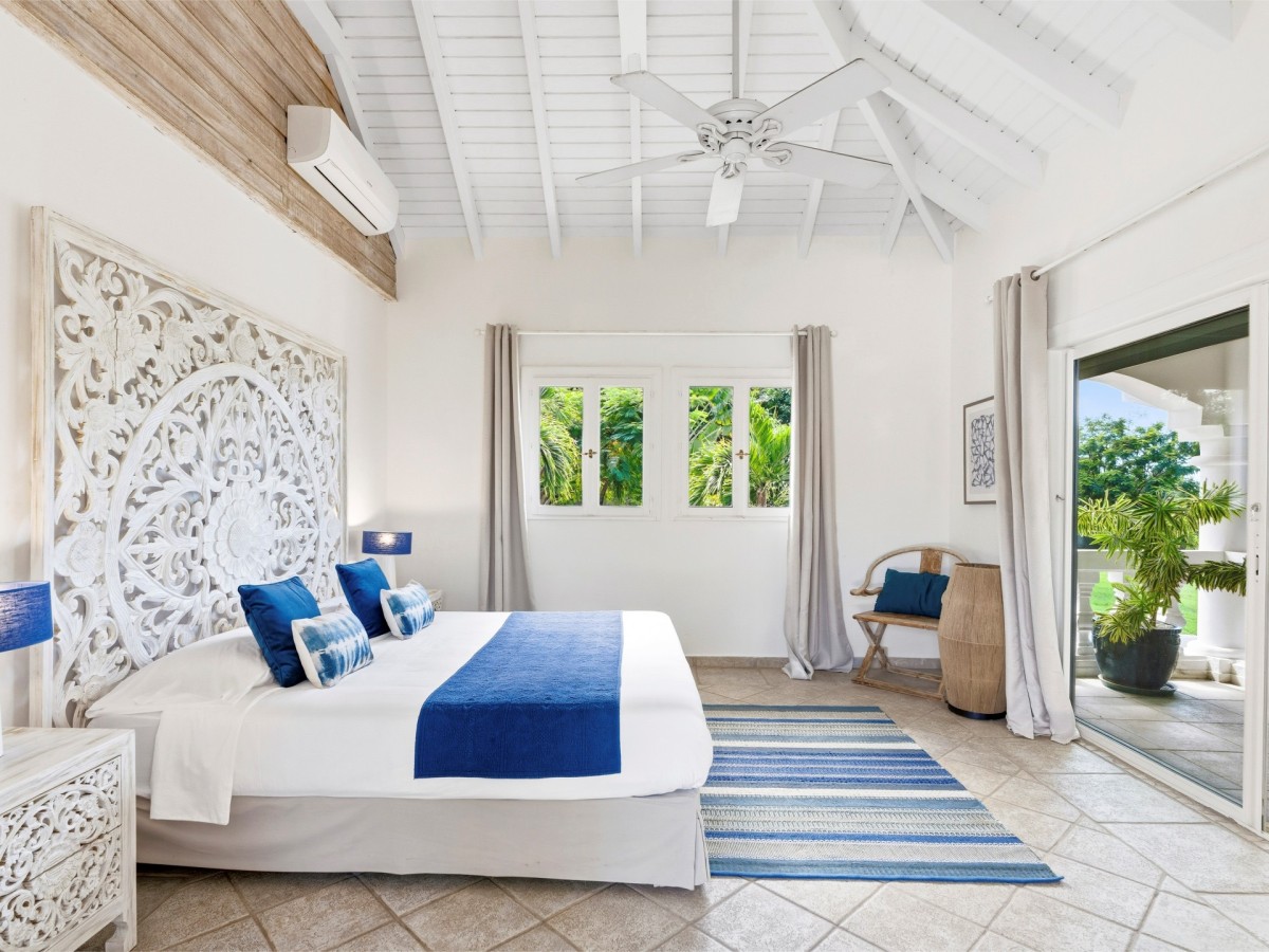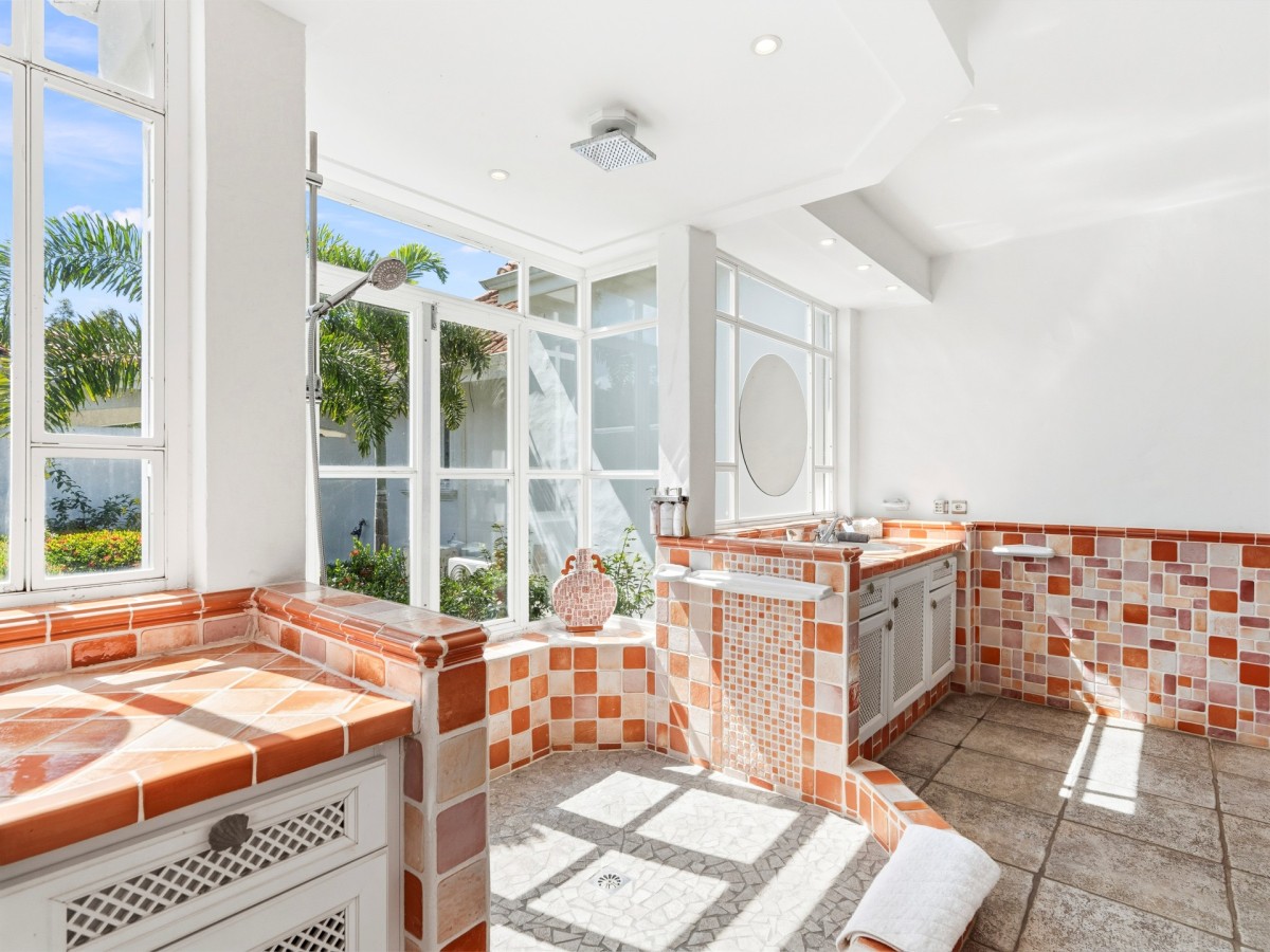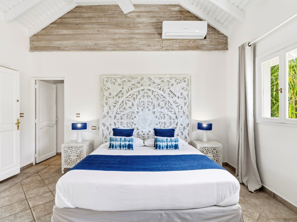 Just outside there is a huge, shimmering blue pool, a handy poolside bar to have a relaxing drink after a vigorous swim and a gazebo adjacent to the state of the art kitchen where you can enjoy your meal as you watch the sun set over the gorgeous azure ocean. This brightly and eclectic designed villa offers exceptional privacy. With large spaces and magical gardens and fountains, every day you stay in this villa, you will feel like you are in absolute paradise.