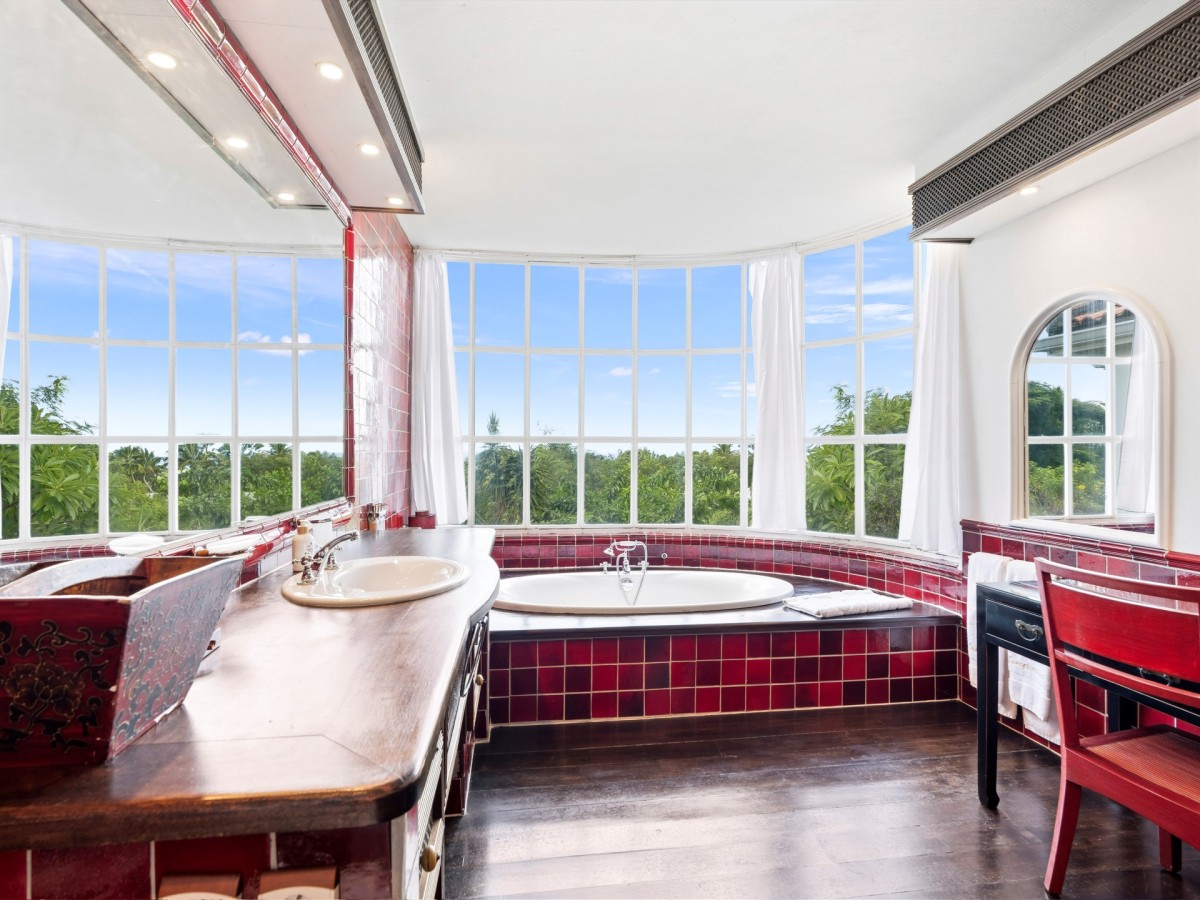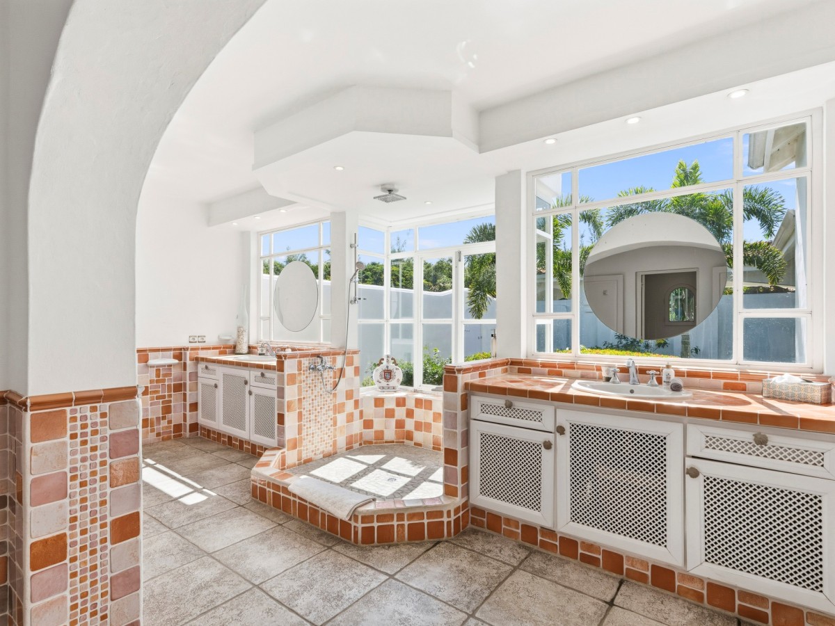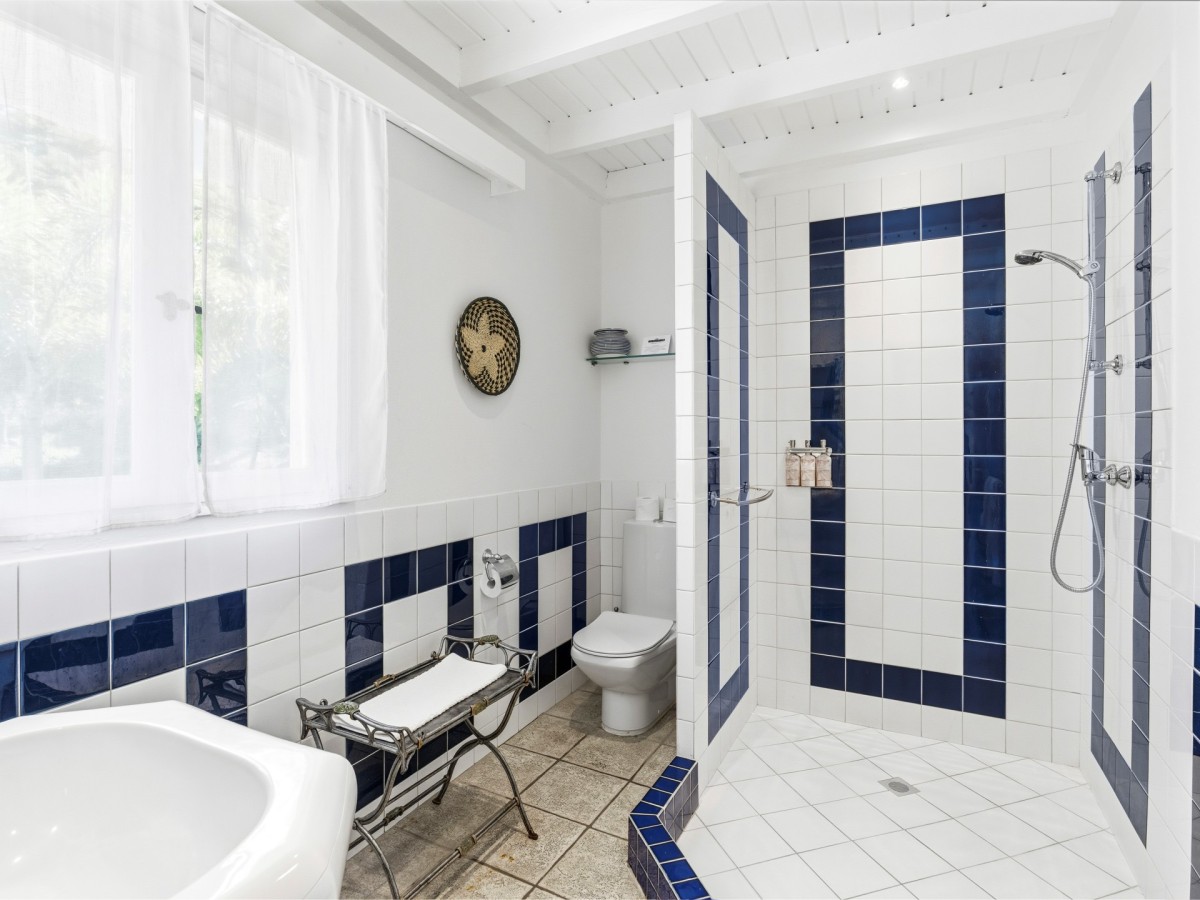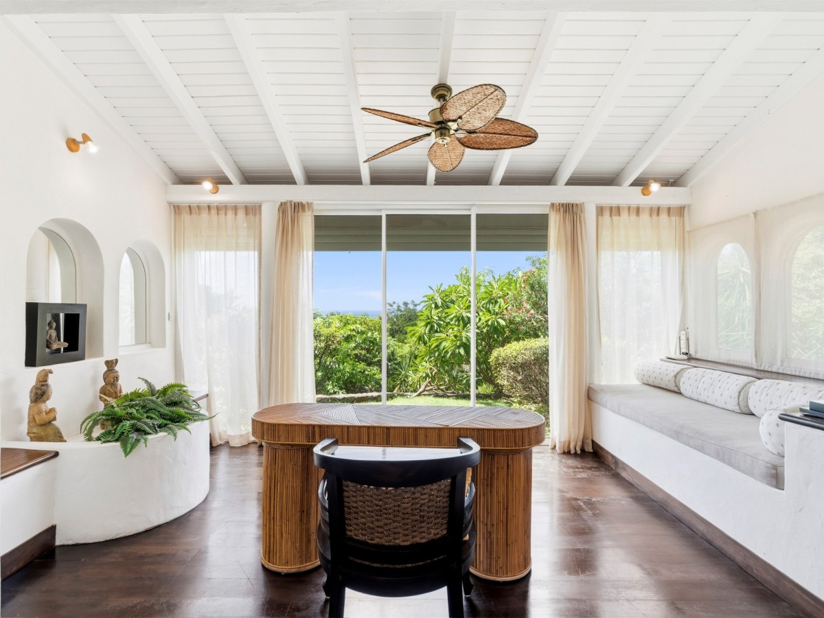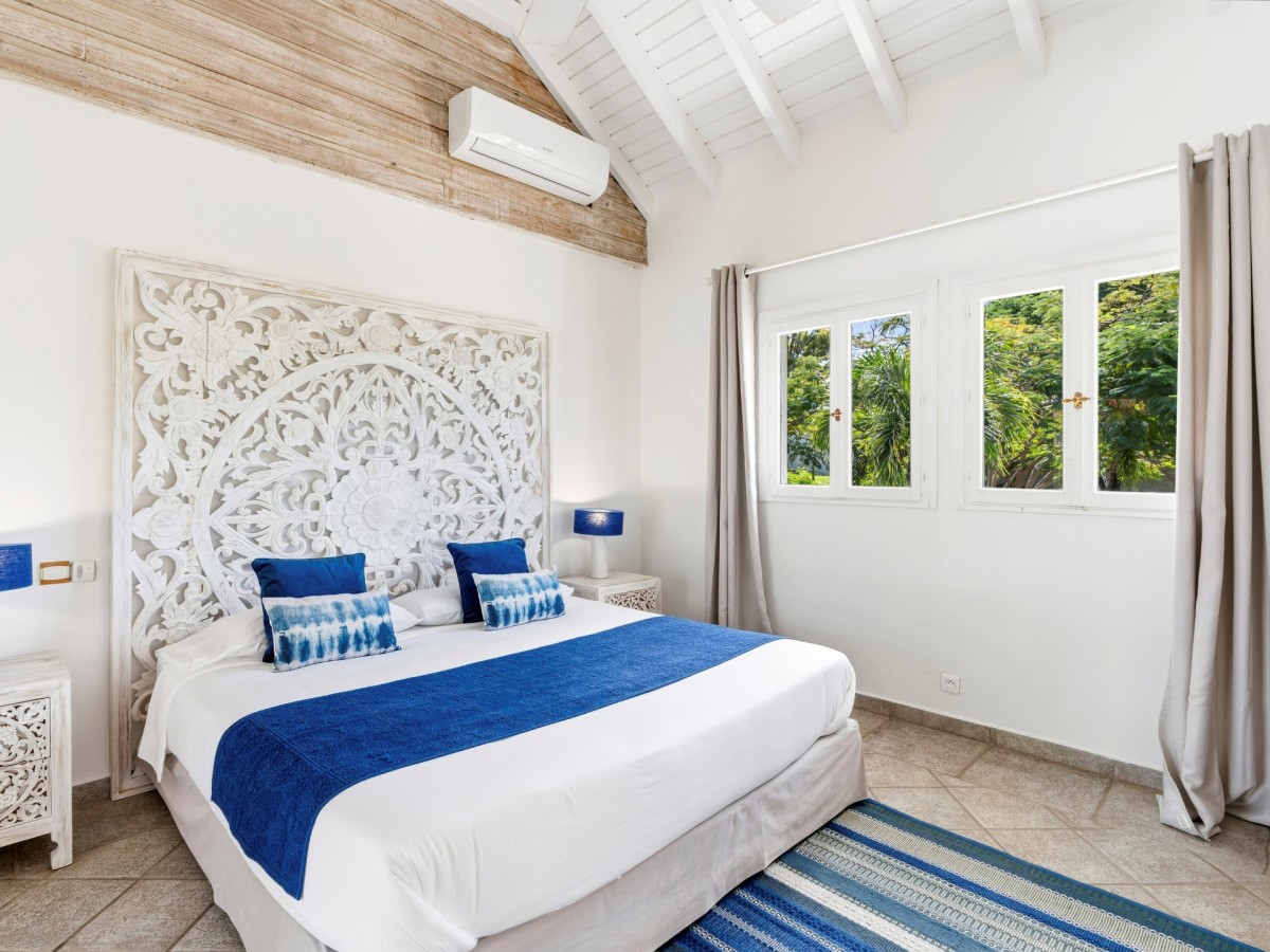 Just outside there is a huge, shimmering blue pool, a handy poolside bar to have a relaxing drink after a vigorous swim and a gazebo adjacent to the state of the art kitchen where you can enjoy your meal as you watch the sun set over the gorgeous azure ocean. This brightly and eclectic designed villa offers exceptional privacy. With large spaces and magical gardens and fountains, every day you stay in this villa, you will feel like you are in absolute paradise.
