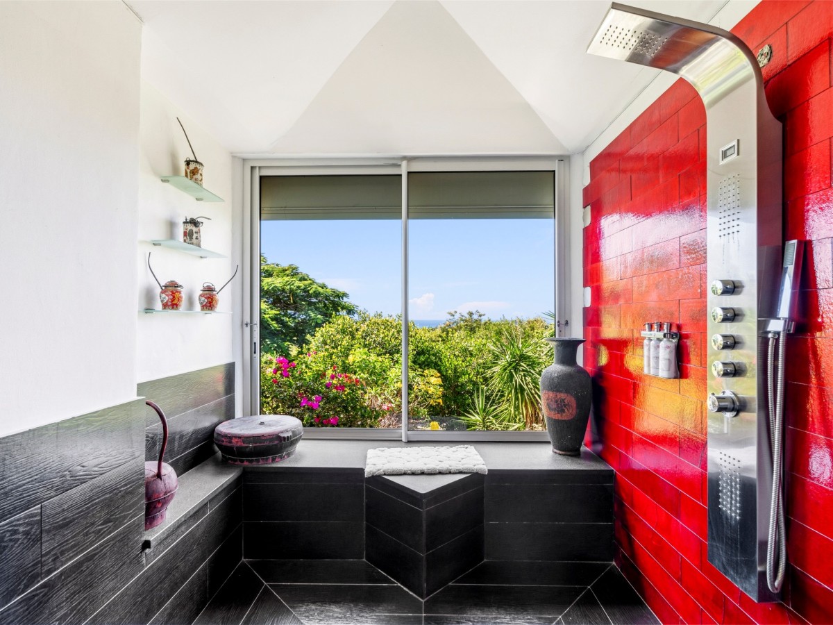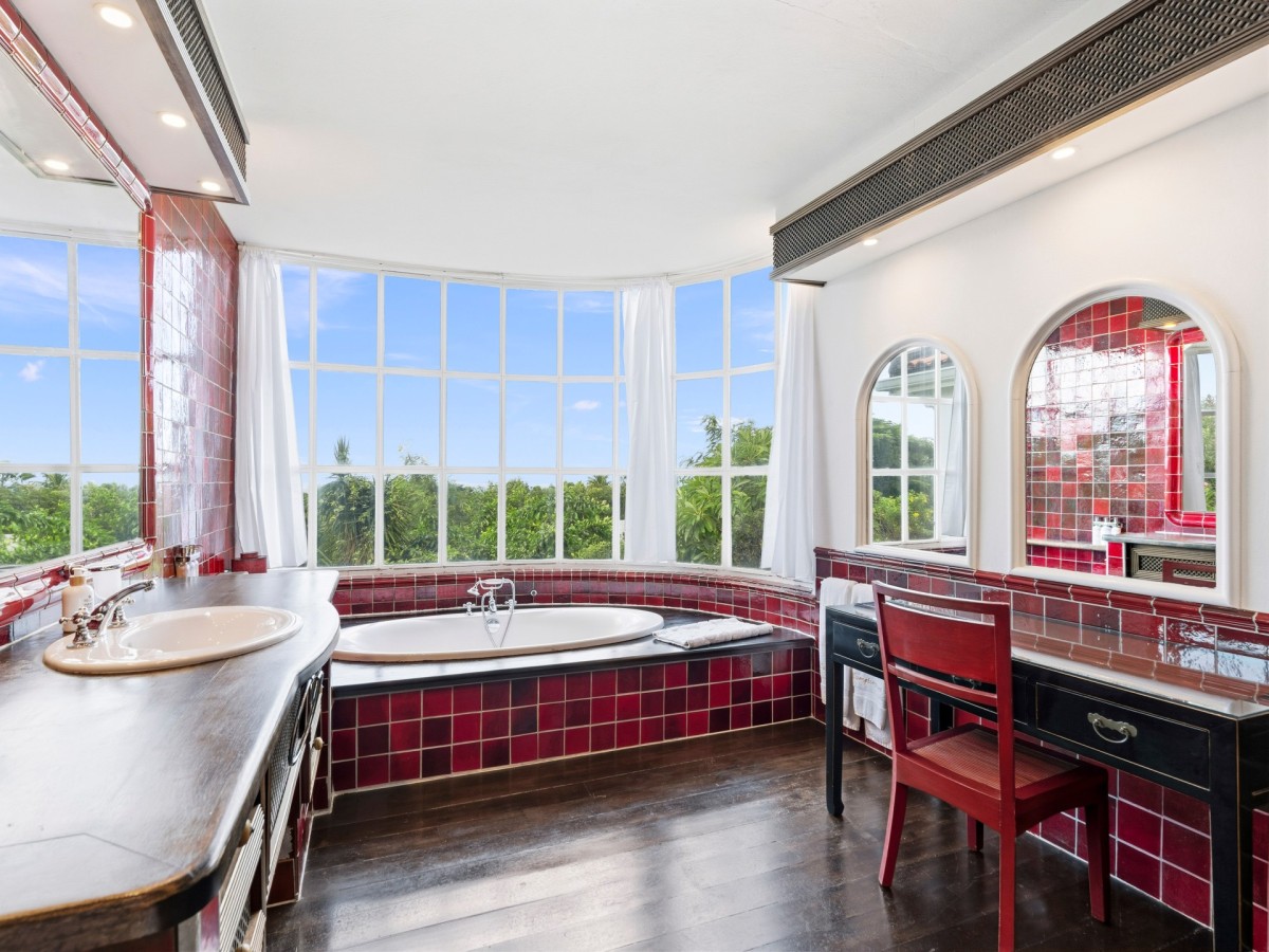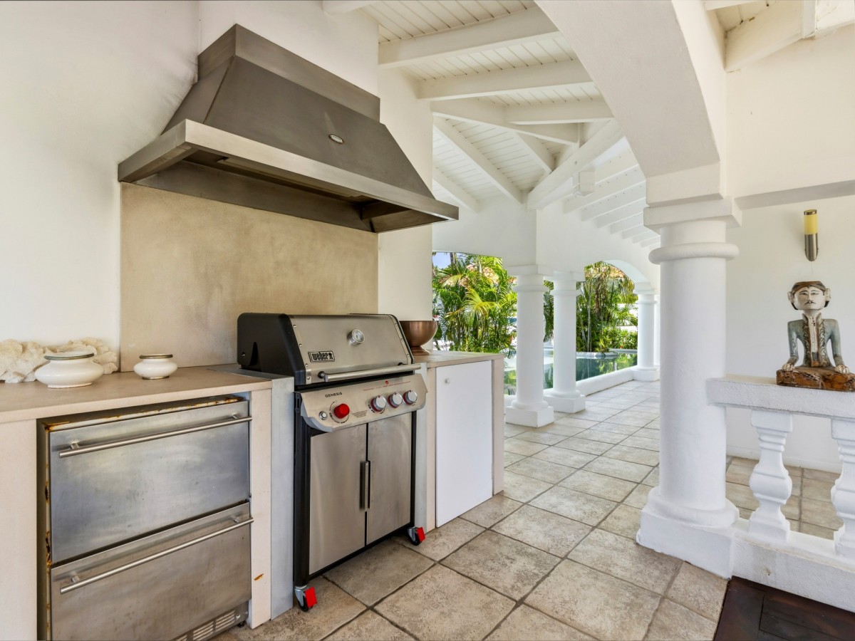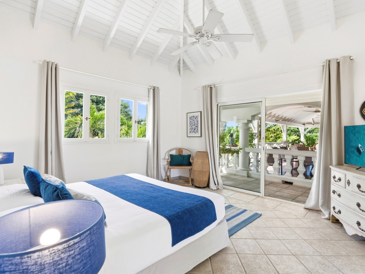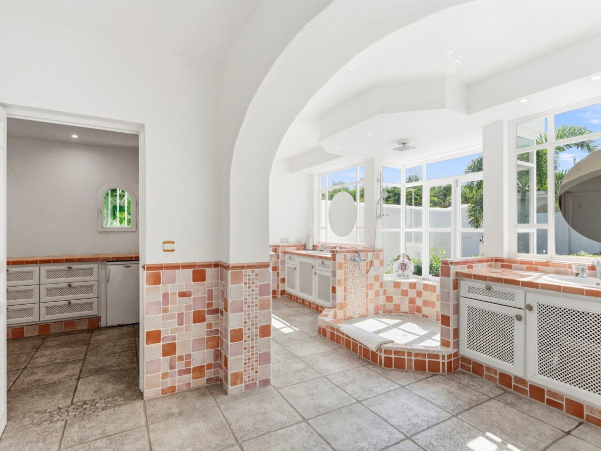 Just outside there is a huge, shimmering blue pool, a handy poolside bar to have a relaxing drink after a vigorous swim and a gazebo adjacent to the state of the art kitchen where you can enjoy your meal as you watch the sun set over the gorgeous azure ocean. This brightly and eclectic designed villa offers exceptional privacy. With large spaces and magical gardens and fountains, every day you stay in this villa, you will feel like you are in absolute paradise.