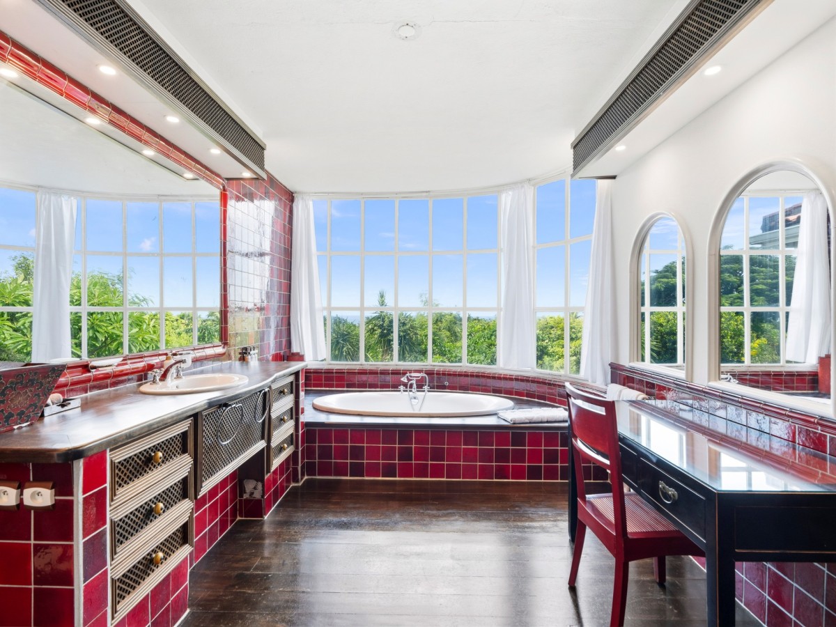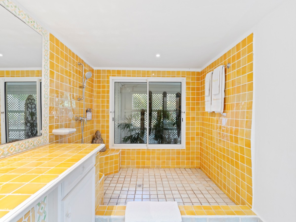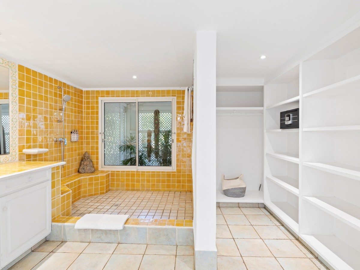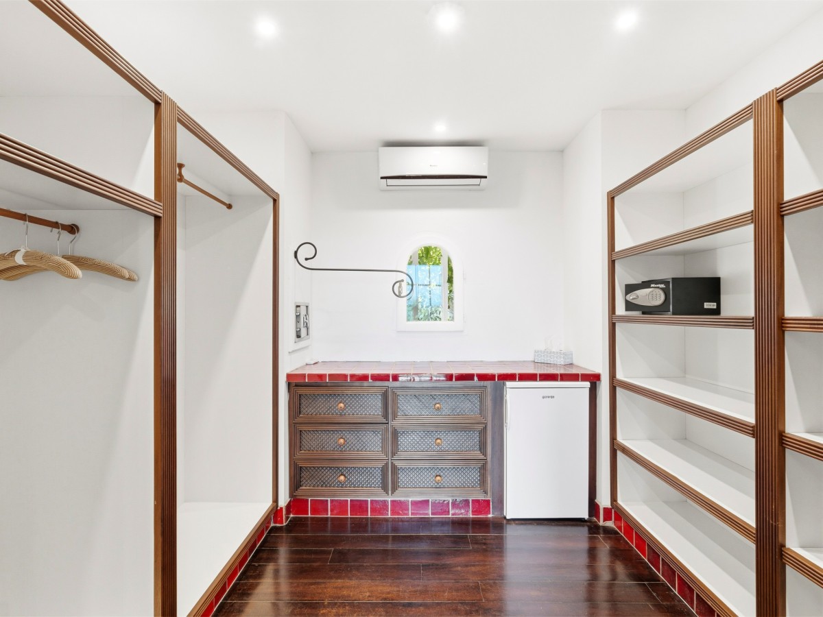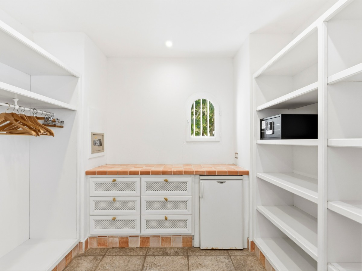 Just outside there is a huge, shimmering blue pool, a handy poolside bar to have a relaxing drink after a vigorous swim and a gazebo adjacent to the state of the art kitchen where you can enjoy your meal as you watch the sun set over the gorgeous azure ocean. This brightly and eclectic designed villa offers exceptional privacy. With large spaces and magical gardens and fountains, every day you stay in this villa, you will feel like you are in absolute paradise.