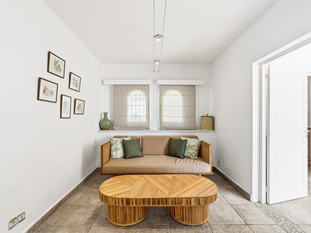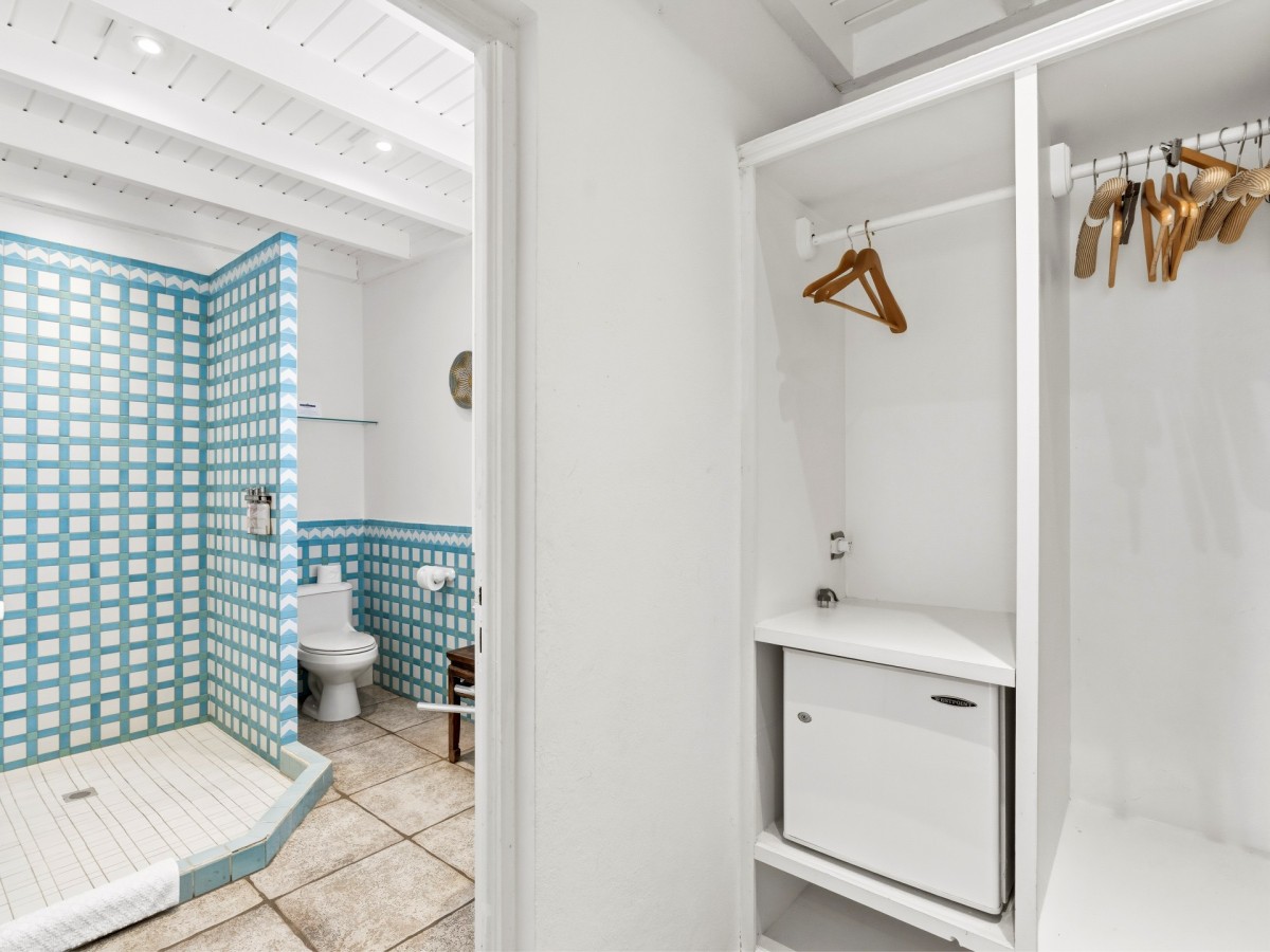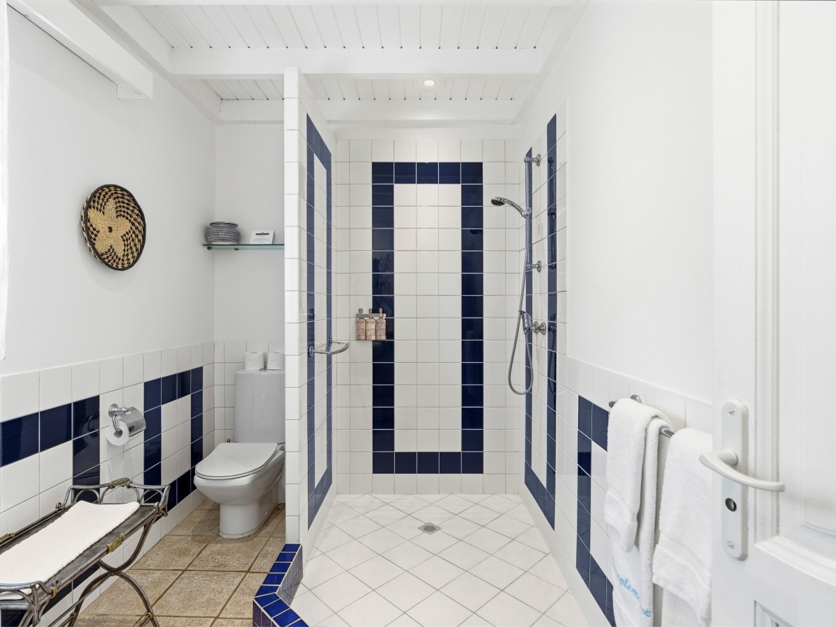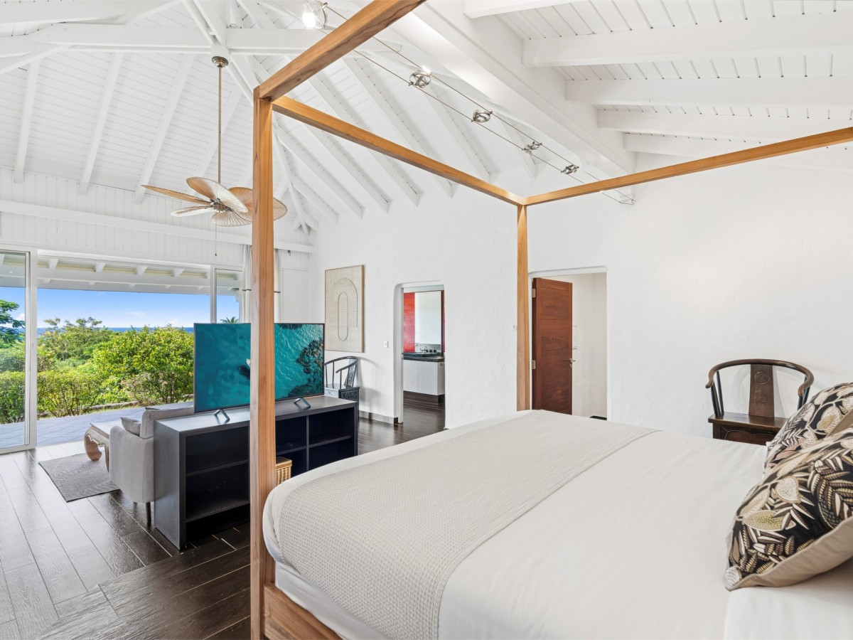 Bedroom 5: Lower floor bedroom with a king-size bed, A/C, ceiling fan, TV and en-suite bathroom with shower, vanity and WC. 2 guests maximum.