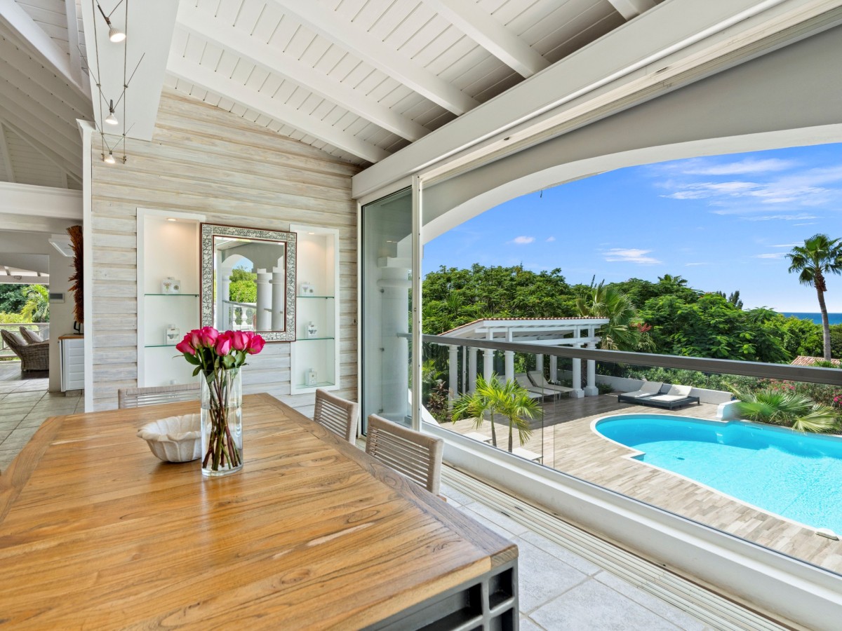 The Villa Pamplemousse is located on an exclusive hill in the highly sought after Terres Basse region of St Martin. Obtaining a gorgeous view, this luxurious St Martin villa rental offers a generous amount of space for a large family or group of friends.
