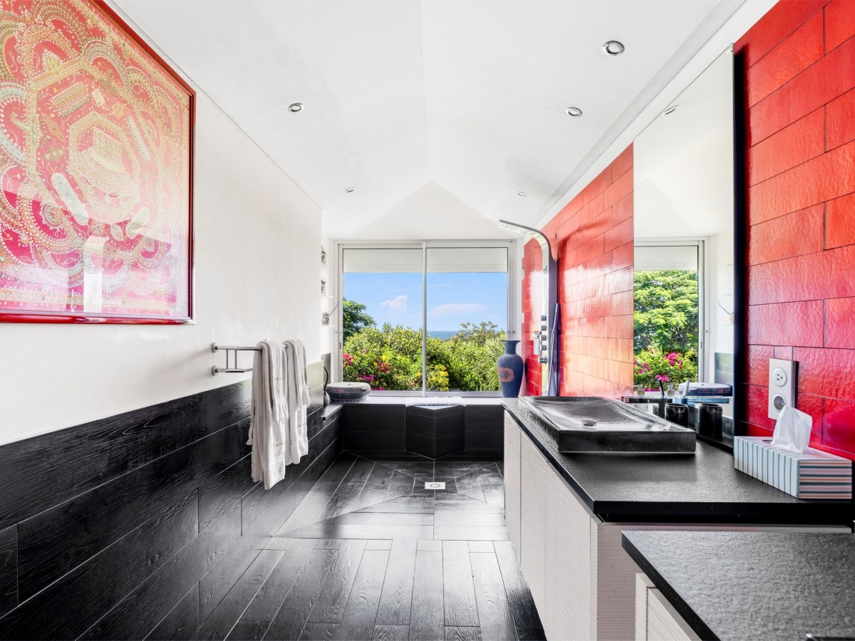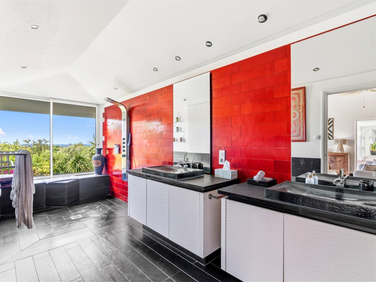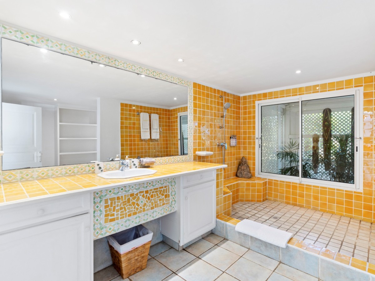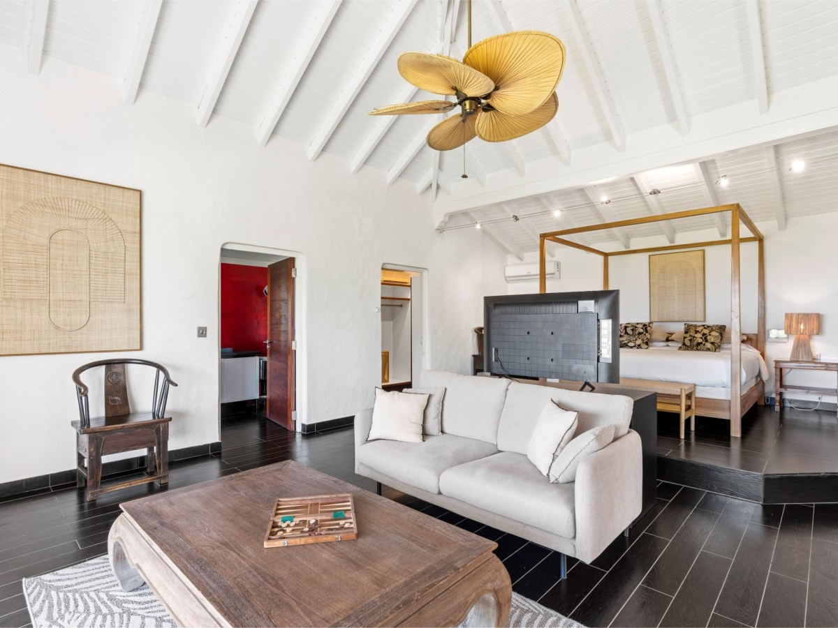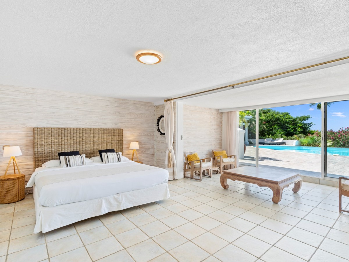 The Pamplemousse offers one of the largest pool terraces and features five, spacious and luxurious bedrooms that are each a retreat in their own right. Four bedrooms are located on the main level of the house with terrace access while the two bedrooms are located downstairs and open up to the pool area.
